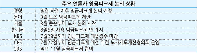 임금피크제 도입 등을 포함한 ‘임금체제개편’이 올 하반기 언론사 노사 간 뜨거운 쟁점으로 부상할 전망이다.