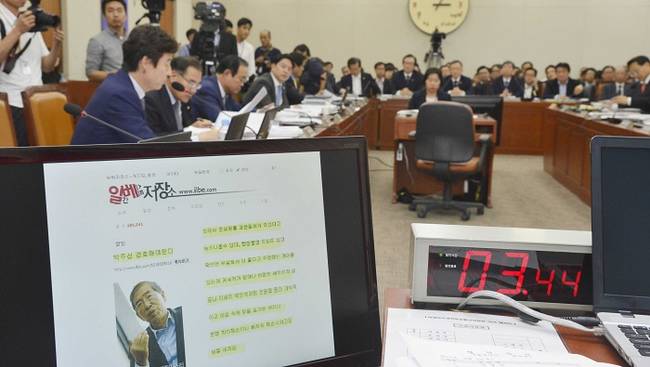 한편 성폭행 혐의를 받고 새누리당에서 탈당한 미방위 소속 심학봉 의원은 이날 국감에 참석하지 않았다. 우상호 새정치민주연합 의원은 의사진행 발언을 통해 “현역 국회의원 성폭행 논란 휩싸인다는 건 있을 수도 없고 황당한 일”이라며 “윤리위원회에서 새누리당 소명 기회 줘야 된다고 하는 건 납득하기 어렵다. 조속히 적절한 절차를 밟아 제명 절차 밟을 걸 새누리당 의원들에게 촉구한다”고 밝혔다.