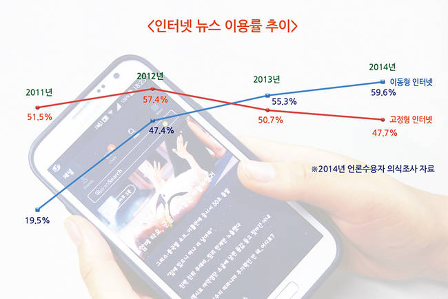 주요 언론사들의 웹과 모바일 트래픽 비중을 보면 지난해부터 무게 중심이 모바일로 넘어왔다. 언론계 관계자들에 따르면 최근 자사의 웹과 모바일 트래픽의 비중은 45 대 55로 보고 있다. 주요 광고주 역시 예전처럼 무턱대고 지면과 방송에 광고비를 쏟아 붓기보다 제품이나 서비스에 맞는 플랫폼을 찾아가고 있다.
