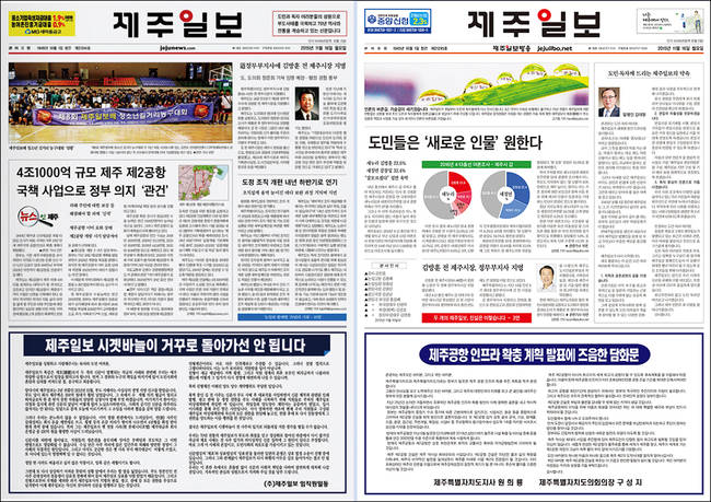 2곳의 신문사가 ‘제주일보’를 각각 발행하는 초유의 일이 벌어지게 됐다. 그동안 ㈜제주일보와 제호 사용 문제로 다툼을 벌였던 ㈜제주일보방송이 지난 9일 호외에 이어 16일부터 제주일보를 정식 발행했기 때문이다.