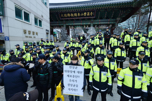 앞서 경찰은 한상균 민주노총 위원장의 자진 출두를 요구한 마지노선인 지난 9일 오후 4시쯤 조계사를 진입할 계획이었으나 '내일 정오까지 시간을 달라'는 조계종 측의 요구를 받아들었다.