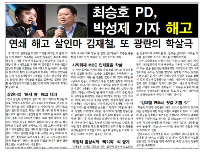 MBC 경영진의 핵심 간부가 지난 2012년 파업으로 해고를 당한 직원과 관련해 “증거도 없이 해고했다”는 등의 발언을 한 녹취파일이 공개돼 파문이 예상된다.