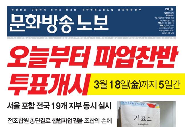 MBC본부는 지난 7일 긴급대의원회의를 열고 14일 오전 9시부터 오는 19일 오후 6시까지 ‘단체협약 체결과 노조파괴 저지를 위한 MBC본부 조합원 총파업’ 찬반투표를 진행하기로 했다. MBC본부에 소속된 19개 지부별로도 의견 수렴 절차를 통해 1700여 조합원의 총의를 모을 방침이다.