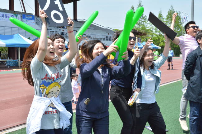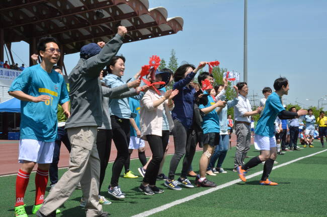 이어진 경기에서도 열띤 응원으로 경기장이 떠들썩했다. 곳곳에서 "파이팅! 힘내라! 이겨라! 앞으로! 좋다!" 등 환호성이 터져 나왔다. 임온유 아시아경제 기자는 "올해로 두 번째 축구대회 응원에 참여했는데 특히 오늘 16강전에서 승리해 응원이 더 즐거웠던 것 같다"며 "축구대회는 회사를 막론하고 기자들이 함께 모일 유일한 기회라 뜻깊다"고 말했다.