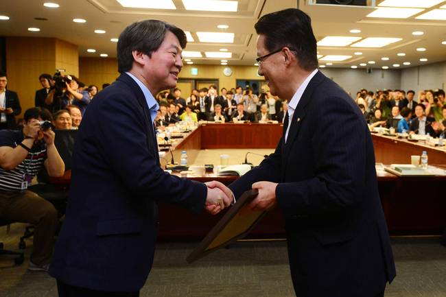 안철수 국민의당 대표와 천정배 상임공동대표가 총선 홍보비 리베이트 의혹에 책임을 지고 29일 사퇴했다. 비상대책위원회 체제로 전환한 국민의당은 최고위원회의에서 박지원 원내대표를 비대위원장으로 추대했다.