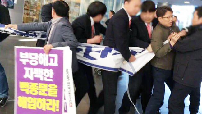 MBC본부는 “국가대란 국정농단 사태가 벌어졌는데도 청와대 비호 방송을 자처한 MBC 경영진을 규탄하는 피켓들을 사측이 폭력으로 저지했다”며 “전례가 없는 불법 부당노동행위, 폭력 행사로 조합원들이 다쳤고, 그 중 1명은 병원치료까지 받고 있다”고 전했다. 이들은 ‘청와대방송 대표이사, MBC사장 안광한 즉각 물러나라’, ‘안하무인 실세 보도본부장 김장겸, 즉각 물러나라’ 등의 피켓을 들고 거세게 반발하고 있는 상태다.