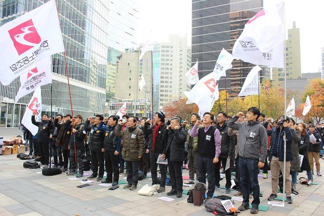 김환균 전국언론노동조합 위원장은 “시스템이 고장 났을 때 작동해야 하는 것은 사법기관이고 사법기관이 망가졌을 때 민주주의 사회가 기대할 수 있는 건 언론”이라면서 “그러나 민주주의 최후의 보루여야 할 언론도 한 몸뚱이가 돼 버렸다. 온 나라가, 초등학생조차 최순실과 정유라라는 이름을 알 때 공영언론에서는 이 이름을 들어보기 어려웠다”고 말했다.