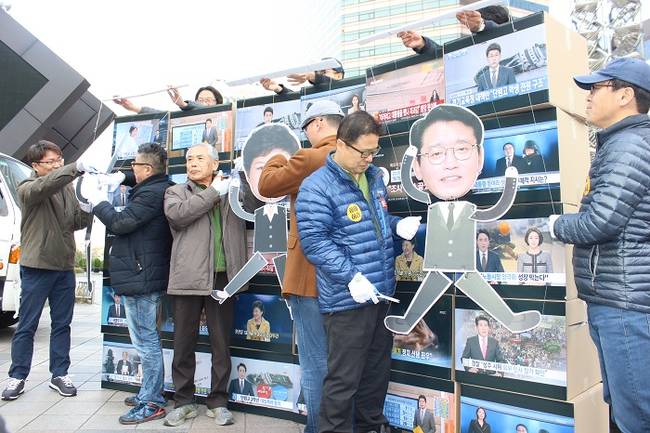 이날 언론노조는 최순실 꼭두각시 절단식을 하며 언론부역자 청산을 다시 한 번 다짐하기도 했다. 또 청와대·편파방송 OUT을 외치며 그동안 편파보도로 의심을 샀던 방송뉴스 캡처물에 모래주머니를 투척하는 퍼포먼스를 선보이기도 했다.