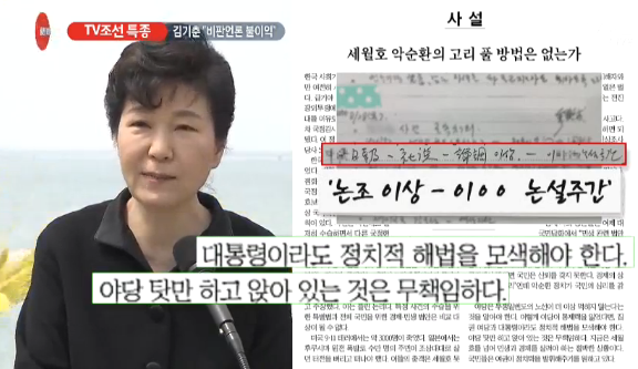 11월 14일 TV조선은 ‘청와대 “비판언론 불이익 가도록” 지시’ 제하 기사를 보도했다. 보도에 따르면 박근혜 대통령은 직접 “시사저널 일요신문-끝까지 밝혀내야. 본때를 보여야. 열성과 근성으로 발본색원”하라는 지시를 내렸다. 이 매체는 고 김영한 전 민정수석이 남긴 비망록을 출처로 박근혜 정권이 주도한 언론탄압 의혹을 보도했다.