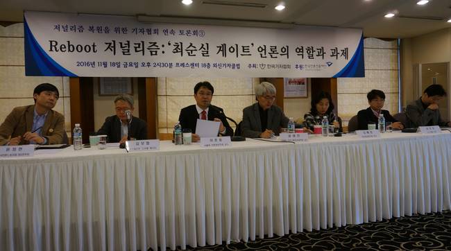 "최순실 사태는 한국 언론의 마지막 기회다." 한국기자협회가 주최한 'Reboot 저널리즘 - '최순실 게이트' 언론의 역할과 과제' 토론회에서 나온 이준웅 서울대 언론정보학과 교수의 진단이다.