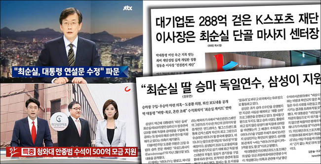 저널리즘의 위기란 말이 무색한 시기다. 신문 부수 감소와 시청률 추락으로 고전을 거듭해온 언론사들이 대형 이슈를 연일 보도하며 활기를 되찾고 있는 모습이다. 김민아 경향신문 편집국장은 “홈페이지 페이지뷰(PV)가 9월에 비해 30~40% 뛰었다”며 “제보도 꾸준히 들어와 지난주에 특종을 내기도 했다”고 했다. 유재형 한겨레 판매기획부장은 “평상시보다 자발적 구독이 두 배 이상 늘어났다. 특별취재팀을 격려하는 메시지나 메일도 쏟아진다”고 설명했다.