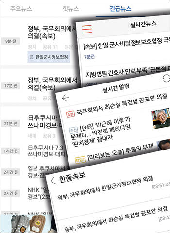 한 일간지 온라인 부서의 A 기자는 정해진 시간마다 주요 뉴스를 정리해 속보를 내보낸다. 자사의 스마트폰 어플리케이션 푸시(Push)를 통해서다. A 기자는 “매일 일정하게 보내야 하는 주요 뉴스가 있다. 또 통신사에서 들어오는 속보나 사회부에서 따로 이슈가 터질 때도 푸시로 대응하고 있다”고 설명했다. 그는 새벽에 당직 근무를 할 때도 큰 사건이다 싶으면 푸시로 속보를 처리한다. 국내 속보뿐만 아니라 국제부에 들어오는 외신 소식 등을 전하기도 한다. A 기자는 “일간지라서 통신사에 비해 푸시를 자주 보내는 건 아니지만 다른 경쟁사에 물먹으면 안 된다는 생각에 일단은 보내놓고 보자는 식이 많다”며 “푸시가 독자들에 실질적인 도움이 되는 지는 고민해볼 필요가 있다”고 지적했다.