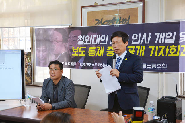 전국언론노동조합(위원장 김환균)은 지난 17일 긴급기자회견을 열고 김영한 청와대 민정수석이 남긴 비망록 중 KBS와 관련된 18개의 대목을 공개했다. 김 전 수석이 김기춘 비서실장 주재 수석비서관 회의 등에 참석하며 남긴 기록에는 2014년 6월16일~10월15일 기간 청와대가 KBS의 인사, 보도 등에 개입한 정황이 들어 있었다. 이 시기 KBS에서는 길환영 사장 해임과 조대현 신임 사장 선임, 이길영 KBS이사장 사퇴와 이인호 KBS 신임 이사장 선임 등이 이뤄졌다. 해당 자료는 비망록을 입수한 TV조선이 KBS 관련 부분만을 골라 제공한 것이다.