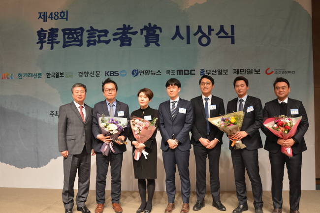 정규성 기자협회 회장은 인사말을 통해 “대상 3편 모두 자칫 역사의 뒤편으로 사라질 수 있었던 권력형 비리를 집요하게 파헤쳐 세상 밖으로 이끌어내는 계기를 마련했다”며 “한국기자상은 여러분들의 노력에 대한 작은 보답이자 격려로 생각해주면 감사하겠다”고 말했다.