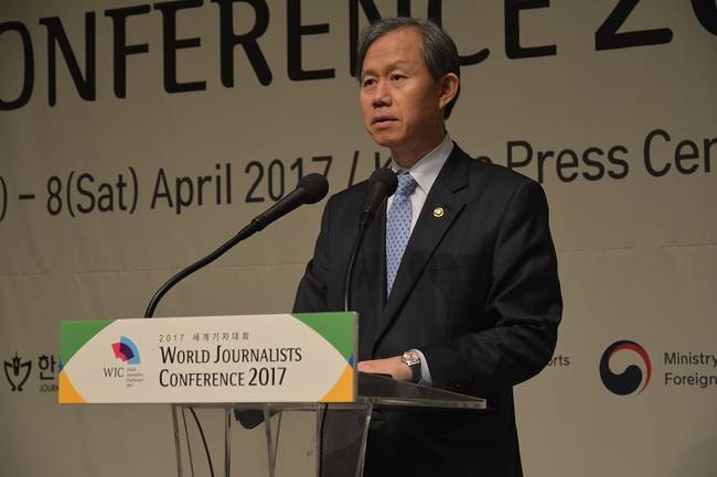 안총기 외교부 제2차관은 3일 한국기자협회가 주최한 ‘2017 세계기자대회’에서 ‘한국이 마주한 외교 위기상황’과 관련한 특강 중 “우리 세계를 더 평화롭고 번영시키기 위한 여러분들의 계속되는 헌신을 믿고 있다”며 이 같이 밝혔다.