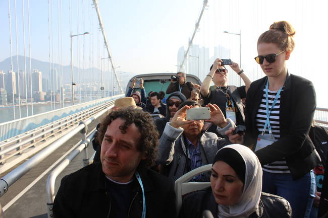 이번 대회에 참가한 세계 기자들은 7일 부산을 떠나 광명과 인천으로 이동하는 빡빡한 스케줄을 소화하면서도 빼어난 자연환경과 관광자원에 잔뜩 매료됐다. 이날 오전 일찍부터 일정을 시작한 기자들을 기다리는 것은 2층 버스였다. 이들은 숙소에서부터 부산역까지 이 버스를 타고 이동하며 부산의 풍광을 즐겼다.