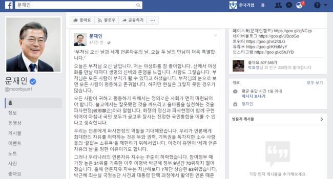 문재인 더불어민주당 대선후보가 3일 ‘부처님 오신 날’과 ‘세계 언론자유의 날’을 맞아 해직기자들의 복직과 명예회복, 보상을 약속했다.