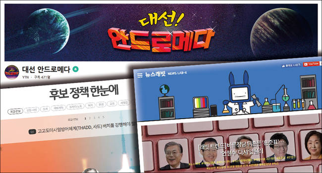 19대 대통령 선거가 코앞으로 다가오며 언론사들의 대선 보도가 다양한 방식으로 진화하고 있다. 특히 2030 세대의 표심이 당락을 결정하는 데 주요한 지표가 된 만큼 이들을 위한 ‘맞춤형 모바일콘텐츠’가 쏟아져 나오고 있다. 언론사들은 포털과 SNS를 통해 대선토론 생중계를 소비하고 실시간으로 댓글을 다는 젊은 층에 주목한다. 실제로 지난 25일 열린 JTBC-정치학회 토론회의 경우 수천 명의 유저가 페이스북을 통해 생중계를 시청하고, 네이버를 통해 9만여 개가 넘는 댓글을 다는 등 모바일콘텐츠를 적극적으로 활용하는 움직임을 보였다.