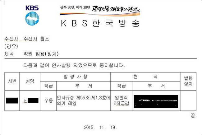 신 모씨는 지난 2015년 당시 보도본부장에게 KBS의 보도현실 등과 관련해 사내 게시판에 욕설을 섞은 게시글을 남겼다가 ‘파면’ 다음으로 중한 징계인 ‘해고’를 당했다. 특히 당시 조대현 KBS사장이 임기종료를 나흘 앞두고 이 같은 징계를 내리면서 구성원들은 우려를 표했다. 표현방식에선 문제가 있었지만 극단적인 징계처분이 내려졌고, 회사에 대한 비판이 해임사유가 됐다는 데 대해 ‘초유의 사태’라는 반응을 보이기도 했다.