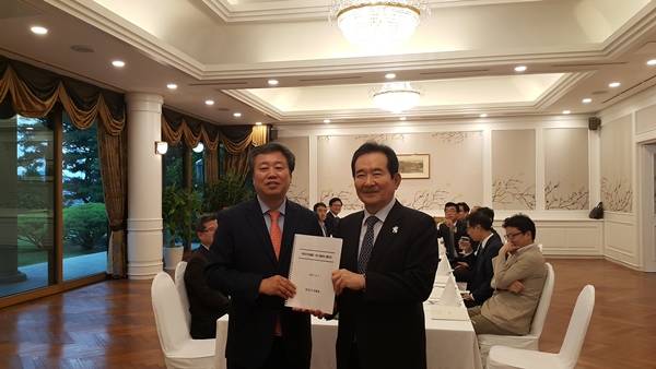 이날 정규성 기자협회장은 해직자 복직과 공영방송 정상화, 지역언론 지원 등을 뼈대로 한 한국기자협회 1만 회원의 제안서를 정 의장에게 전달했다.