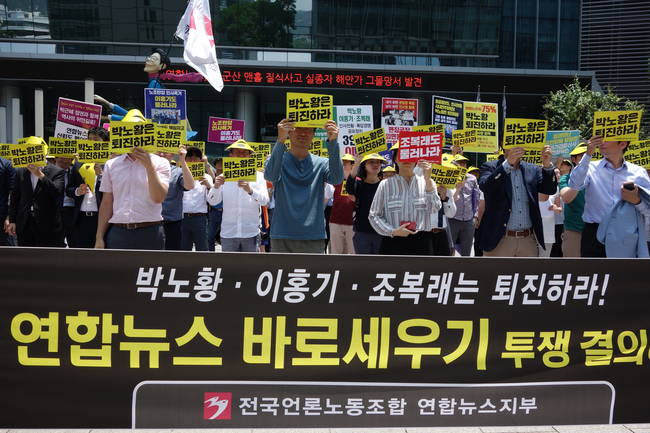 이들은 “빠르고 정확한 뉴스로 무너진 회사를 다시 세우는 데 박 사장과 경영진이 할 일은 없다. 이제 연합뉴스를 사랑하는 사람들이 회사를 바로 세울 것”이라며 “박 사장과 경영진은 당장 물러나야 한다”고 촉구했다.