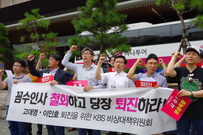 이들은 고 사장에 대해 “대표적인 언론부역자로서 공영방송 정상화를 위해 즉각 직을 물러나야 마땅한 인물”이라며 “퇴진은커녕 박근혜 정권을 대변하는 이사들이 다수를 차지한 이사회를 동원해 새로운 부사장 임명을 동의받은 뒤 대대적인 본부장 국장 인사를 통해 ‘2기 체제’를 구축하려는 야욕을 숨기지 않고 있다”고 했다. 조인석 제작본부장과 관련해선 “MB정권 출범 이후 이승만 다큐 제작 강행, 정율성 다큐 방송 보류, 황교익 선생 출연 취소 등 제작자율성 침해와 블랙리스트 논란의 중심에 서 있는 인물”이라고 적시했다.