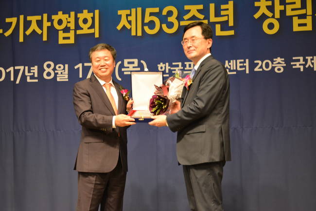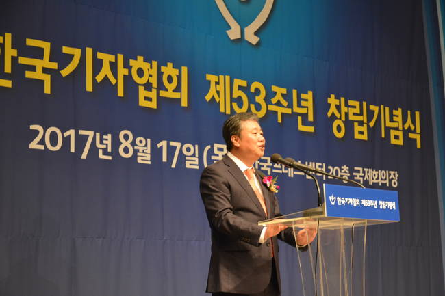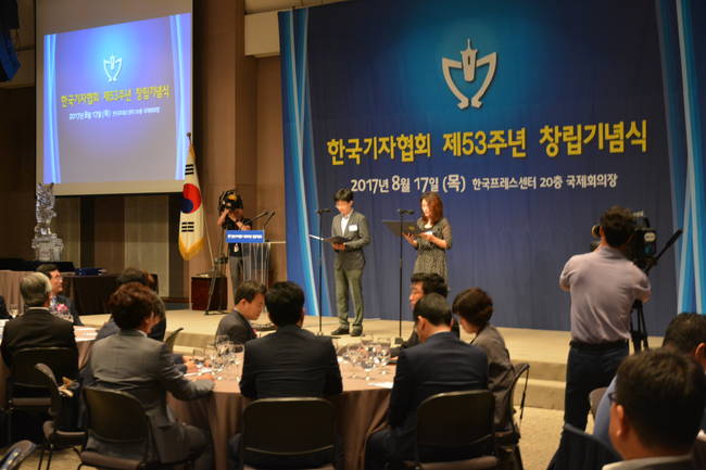17일 열린 한국기자협회 제53주년 창립기념식의 주인공은 기자들이었다. 정재계 인사를 최소화하고 기자협회 임원진들과 지회장 및 회원들이 주요 참석자로 자리했다. 정규성 한국기자협회 회장은 “1964년 8월 17일 군사정권의 언론자유 침해 저지로 탄생한 한국기자협회가 올해로 53번째를 맞았다”며 인사말을 시작했다.