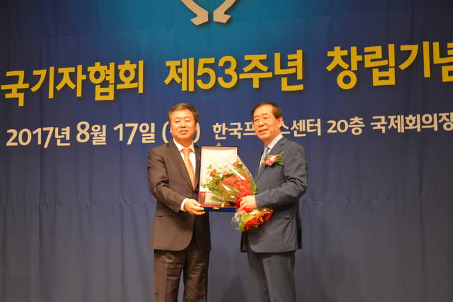 이날 한국기자협회는 박원순 서울특별시장과 소병철 한국기자협회 자문위원장에게 그간의 노고에 감사한 마음을 담아 감사패를 전달했다. 한국기자협회의 자문 변호사이자 한국기자상 심사위원으로 활동해온 박 시장은 “언론의 역할이 이렇게 중요하구나라는 것을 새삼 깨달았다. 여러분이 지적한 것들 잘 수용해서 언론 수호의 발전을 위해서 열심히 노력했더니 이런 상을 받은 것 같다”고 소감을 밝혔다. 그는 “앞으로도 53주년이 아니라 100년 200년이 가도 언론의 위상이 오늘과 같이 더 널리 전해지길 바라고 저도 함께 하겠다”는 뜻을 전했다.