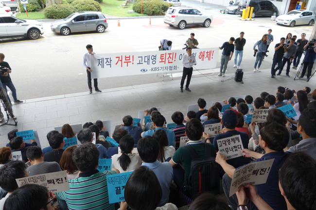 공영방송 KBS기자들이 28일 자정을 기해 제작거부에 들어갔다. 해당일시부로 야근자들은 업무를 중단한 채 철수했고, 서울을 제외한 전국 KBS기자들도 29일 0시부터 제작거부에 돌입한다. KBS기자 250여명은 이날 오전 11시 서울 여의도 KBS신관 계단에서 출정식을 열고 고대영 사장 퇴진과 공영방송 정상화를 요구하는 싸움의 첫발을 내딛었다.