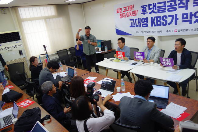 언론노조 KBS본부(본부장 성재호, 이하 KBS본부)는 30일 서울 여의도 KBS연구동에서 ‘軍 댓글공작 특종, 고대영 KBS가 막았다’ 기자회견을 열고 당시 핵심간부였던 김기현 군 사이버사령부 530심리전단 총괄계획과장(부단장)의 인터뷰 등이 담긴 자체제작 뉴스(해당 리포트 유튜브 링크)를 공개했다.