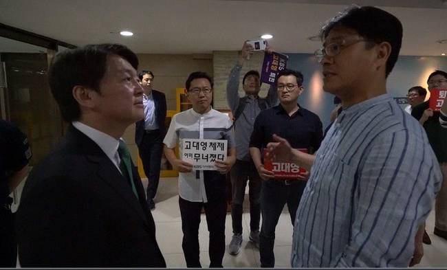 제작거부에 들어간 KBS 기자·PD 등 구성원들이 31일 방송 출연차 KBS를 방문한 안철수 국민의당 대표를 만나 고대영 사장 퇴진 의견을 전달했다. 또 파업 기간 동안 국민의당 관계자들의 KBS 출연과 인터뷰 자제를 요청하며 공영방송 정상화에 동참하기를 당부했다.