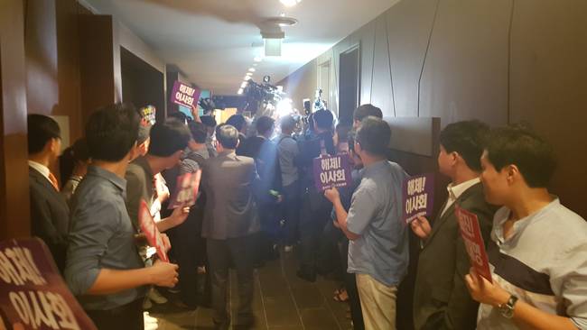 “김장겸은 물러나라. 고대영은 물러나라. 적폐인사는 물러나라.”