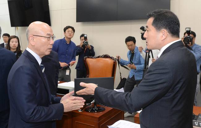 박 간사의 발언을 두고 여당 의원들은 크게 반발했다. 더불어민주당 신경민 간사는 “인사청문은 해당 법률에 따라 진행을 했고 보고서를 채택하는 것도 노력했지만 안 됐다. 그 과정은 여기 있는 분들 다 안다”며 “인사청문을 거쳐서 보고서 채택이 되냐 안 되냐 여부는 법률적 요건은 아니다. 청문회가 끝나고 보고서가 채택이 안되면 청와대에서 요청서를 보내는 절차가 법률에 써 있다. 다 하나씩 확인해 어긴 적이 없다”고 설명했다.