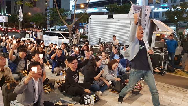MBC·KBS 총파업 18일째를 맞은 지난 21일 대전이 들썩거렸다. 지역MBC 17개지부 언론인과 시민단체, 대전시민 등 600여명은 이날 저녁 대전 서구 둔산동 교보문고 앞 거리에서 열린 '대전 돌마고(돌아오라 마봉춘 고봉순)' 집회에서 지역 공영방송 정상화와 낙하산 사장 철폐를 한 목소리로 외쳤다. 김민식 MBC PD의 방문과 가수 김장훈씨의 공연으로 대전시민들의 호응도 컸다.