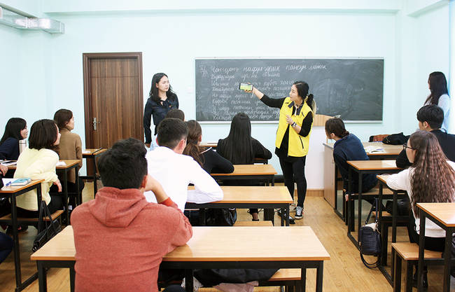 전국언론노조 KBS본부가 걸그룹 여자친구의 ‘오늘부터 우리는’을 개사해 파업가를 만든 가운데 최근 한국기자협회 사랑나눔 기자봉사단원으로 몽골 봉사활동에 참가한 김선영 KBS청주 기자가 교육 봉사활동 중 몽골 학생들에게 파업가를 가르쳐 큰 호응을 얻음.
