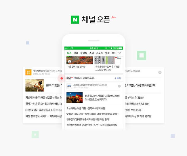 네이버가 언론사 편집권을 확대한 새로운 ‘모바일 뉴스 서비스’를 17일 선보였다. 그간 네이버가 배열해온 뉴스편집 영역을 대폭 축소하고, 언론사가 독자적으로 편집할 수 있는 ‘채널’을 오픈한 것이다. 아울러 알고리즘 기술로 기사를 자동 배열한 영역도 확대됐다. 모바일 뉴스 섹션(정치, 경제, 사회, IT, 생활, 세계) 홈 상단의 헤드라인 뉴스에 클러스터링 알고리즘을 적용해, 기사를 자동으로 이슈에 따라 묶어서 보여주는 방식이다.