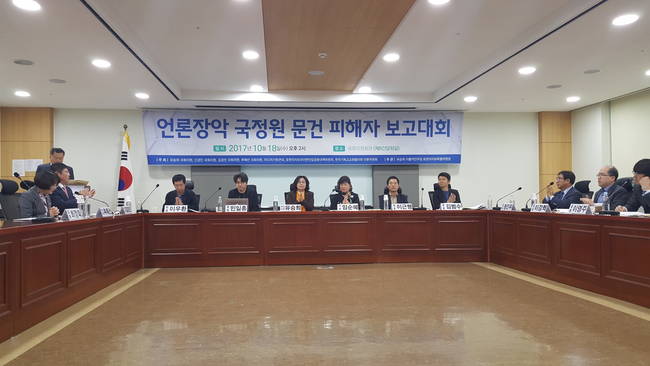이명박 정부 시절 국정원이 작성한 문건으로 피해를 본 언론인들이 자신과 프로그램, 동료들의 피해 사례를 발표했다. 18일 유승희 더불어민주당 표현의자유특별위원장 주관으로 서울 여의도 국회의원회관 제8간담회실에서 열린 ‘언론장악 국정원 문건 피해자 보고대회’에는 민일홍 KBS 라디오 PD, 김범수 PD, 이근행 MBC 전 시사교양국 PD, 이우환 MBC 전 ‘PD수첩’ PD 등이 참여해 국정원의 언론 장악 과정과 피해 사례들을 구체적으로 진술했다.