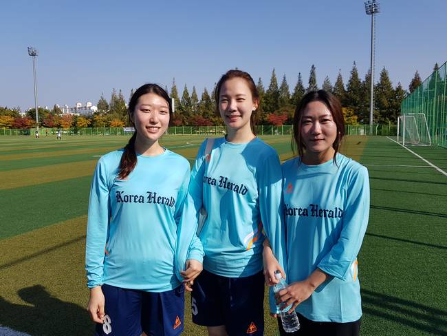 경기에 나선 코리아헤럴드 여기자 3인방은 올초 함께 입사한 동기다. 임정요 기자는 "동기들과 같이 뛸 수 있어서 즐거웠다"며 "이 경기를 계기로 많은 언론사에서 여기자들이 선수로 나설 수 있길 바란다"고 말했다.