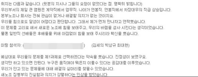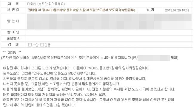 김연국 MBC본부장은 “2013년 2월에 3노조가 만들어지고 보도국 영상편집부장이 영상노조원들을 노조 탈퇴시킨 게 시발점이었다. 세부적인 보도지침은 그 이후에 실현된 것”이라고 전했다. 김 본부장은 “영상취재부가 공중분해된 후 보도영상 책임지는 유일한 부서가 영상편집부였는데, 처우가 좋은 편이 아니었다. 사측은 악랄하게 그 약점을 파고들어, ‘노조 탈퇴하고 3노조 가입하면 처우 개선해주겠다’ ‘보도 지침 충실히 따라라. 안 그러면 불이익이 가해질 것이다’ 등으로 협박했다”고 일갈했다. 이날 노조는 영상지침과 관련해 김장겸 사장과 권태일 부장 등 관련자에 대해 업무방해와 노동조합법 위반 등의 혐의로 형사 고소하겠다는 뜻을 전했다.