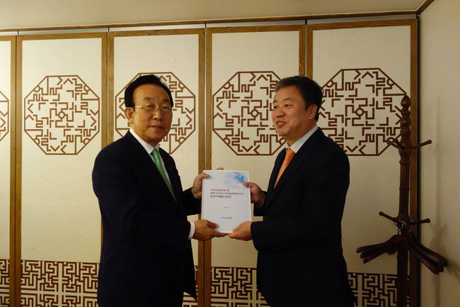 정규성 한국기자협회 회장과 김진호 부회장(경남신문), 김두수 언론정책위원(경상일보), 남궁창성 지역신문발전특별위원회 위원장(강원도민일보), 강해인 보도자유분과위원회 위원장(경기일보)은 1일 서울 종로구 세종문화회관에 위치한 중식당에서 김관용 전국시도지사협의회장(경북도지사)을 만나 일부 지자체 및 기초단체에서 시행하고 있는 지역 언론 지원 조례를 전국 지방자치단체로 의무적으로 확산해줄 것을 요청했다.