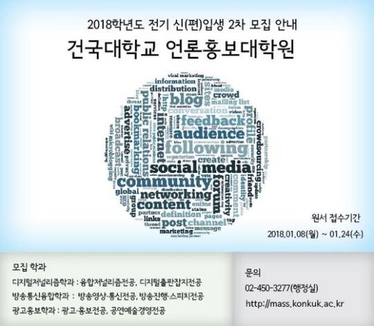 문의는 건국대 언론홍보대학원(02-450-3277, mass@konkuk.ac.kr)으로 하면 된다.