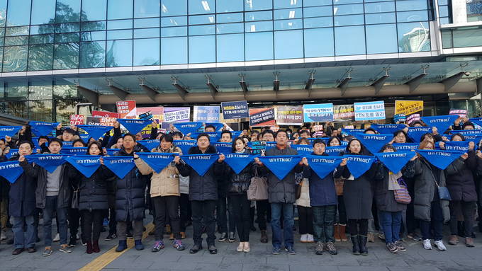 박 지부장은 "YTN을 다시 세우고 보도국 독립을 이루고 정상화 깃발을 드는 파업이 될 수 있도록 여러분과 제가 함께 가겠다"며 "최남수, 부역적폐 이제 그만 끝내고 이기자. 파업이라는 단어가 회환과 통탄이 아니라 승리‧기쁨의 단어이길 바란다"고 목소리를 높였다.