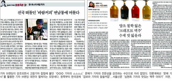 김보라 한국경제신문 기자는 문패 기사로 출입처에서 전문성을 쌓은 경우다. 생활경제부에서 식음료를 담당하는 그는 출입처 이슈와 독자 간의 접점을 찾다 남녀노소가 즐기는 커피를 떠올렸다. 지난해부터 커피 이야기를 담은 [김보라 기자의 알쓸커잡]을 쓰면서 한국경제가 주최한 ‘청춘 커피 페스티벌’을 기획하기도 했다. 김 기자는 “이름 걸고 기사를 쓰면 더 신경쓸 수밖에 없다. 자연스레 취재원 인맥이 넓어졌고 나름의 브랜드도 생긴 것 같다”며 “(문패 기사로) 기자로서 한 분야를 깊게 들여다볼 기회를 얻게 됐다”고 말했다.