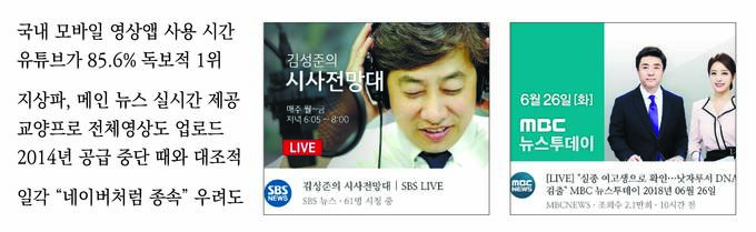 이 때문일까. 최근 유튜브에 뉴스 콘텐츠를 올리는 방송사들이 늘어나고 있다. 2013년 YTN의 뒤를 이어 JTBC, SBS가 뉴스 콘텐츠를 올리더니 올해 들어 MBC와 KBS까지 메인 뉴스를 실시간으로 제공하고 있다. 뉴스뿐만 아니다. MBC와 KBS의 경우 ‘PD수첩’ ‘추적60분’ 등 시사교양 프로그램 전체영상을 유튜브에 올리고 있다. 지난 2014년 12월 MBC, SBS, 종합편성채널 4사 등을 포함한 온라인·모바일 광고대행사 스마트미디어렙(SMR)이 광고 직접영업권을 두고 유튜브와 ‘밀당’을 하다 콘텐츠 공급을 중단한 것과 비교하면 대조적인 흐름이다.