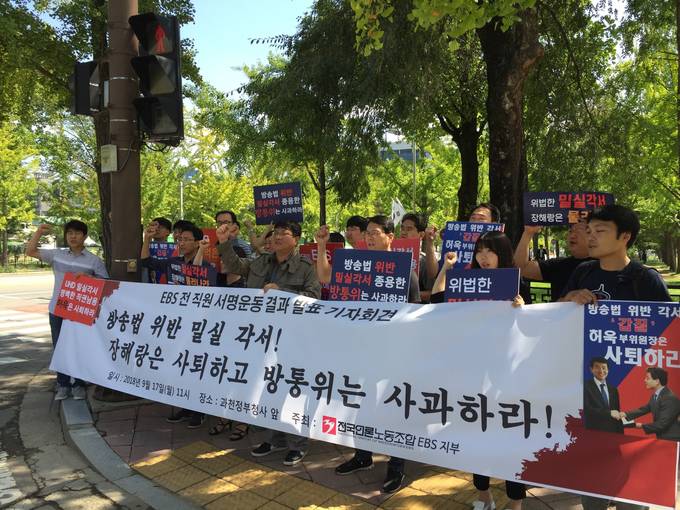 EBS지부에 따르면 앞서 장 사장은 어떠한 내부 절차도 거치지 않은 채 지난해 12월14일 방통위 허욱 부위원장이 내민 ‘KBS는 EBS의 수도권 지상파 UHD 방송을 위한 송신설비 구축비용의 3/4을, EBS는 1/4을 부담한다’는 내용의 각서에 서명했다. EBS지부는 이에 반발, 지난달 1일부터 EBS 사옥 1층 로비에서 농성을 이어가고 있으며, 향후 이효성 방통위원장과 만나 장 사장의 해임과 방통위의 공식 사과를 촉구할 방침이다.