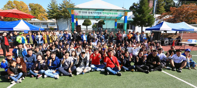 충북기자협회가 주최하는 ‘2018한마음체육대회’가 지난 20일 한국폴리텍대학 청주캠퍼스에서 열렸다. 이날 중부매일·충북일보·충청매일·충청타임즈·충청일보·KBS청주·MBC충북·CJB청주방송·CBS·BBS·연합뉴스·뉴시스 등 12개 언론사 회원과 가족 등 200여명이 참여, 축구 청백전, 명랑운동회, 남녀 팔씨름대회, 사별 계주 종목 등을 통해 화합을 다졌다. 박성진 충북기자협회장은 “체육대회를 통해 회원들이 업무에 따른 스트레스를 풀고 회원 간, 가족 간 화합하는 시간이 됐으면 좋겠다”며 “앞으로 더욱 발전하는 협회가 되도록 노력하겠다”고 말했다.