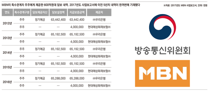 MBN이 지난 2011년 종합편성채널 승인 당시 임직원 명의로 차명 대출을 받아 자본금을 마련하고, 이를 은폐하기 위해 회계조작을 벌였다는 의혹이 제기됐다. 금융당국은 이 같은 정황을 확인하고 검찰 고발을 검토 중이며, 방송통신위원회도 사실관계 확인에 나서 최악의 경우 MBN의 승인취소로 이어질 수 있다는 전망까지 나오고 있다.