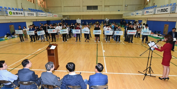 전북기자협회(회장 이창익)가 지난달 28일 전북 완주군 지방자치인재개발원(옛 지방행정연수원) 실내체육관에서 12개 지회 회원 및 가족 200여명이 참여한 가운데 가을 체육대회를 열었다. 이번 체육대회는 훌라후프 돌리기, 2인 3각 달리기 등 회원 가족 모두가 참여할 수 있는 명랑체육회와 경품 추첨 등 다채로운 프로그램으로 진행됐다. 사별 대항전으로 치러진 족구대회에선 뉴시스 전북본부와 전북도민일보가 각각 우승과 준우승을 차지했다.