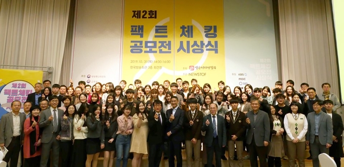방송기자연합회가 주최한 ‘제2회 팩트체킹 공모전’에서 명지대 사회대 학생들로 구성된 ‘고등어빵’팀이 콘텐츠 부문 대상, 대구시민 4명이 참여한 ‘와이카노(Why Can O)’팀이 팩트체크 부문 대상을 각각 받았다. 방송기자연합회는 이번 공모전에 10대 청소년에서 60대 장년층까지 전국에서 340개팀이 응모했으며, 심사를 거쳐 22개팀을 수상작으로 뽑았다고 밝혔다.