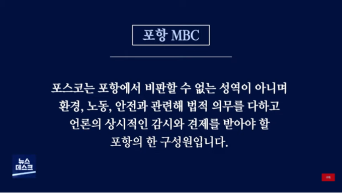 “포스코는 포항에서 비판할 수 없는 성역이 아니며, 환경, 노동, 안전과 관련해 법적 의무를 다하고 언론의 상시적인 감시와 견제를 받아야 할 포항의 한 구성원이다.”